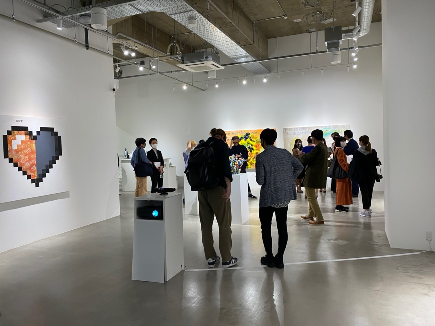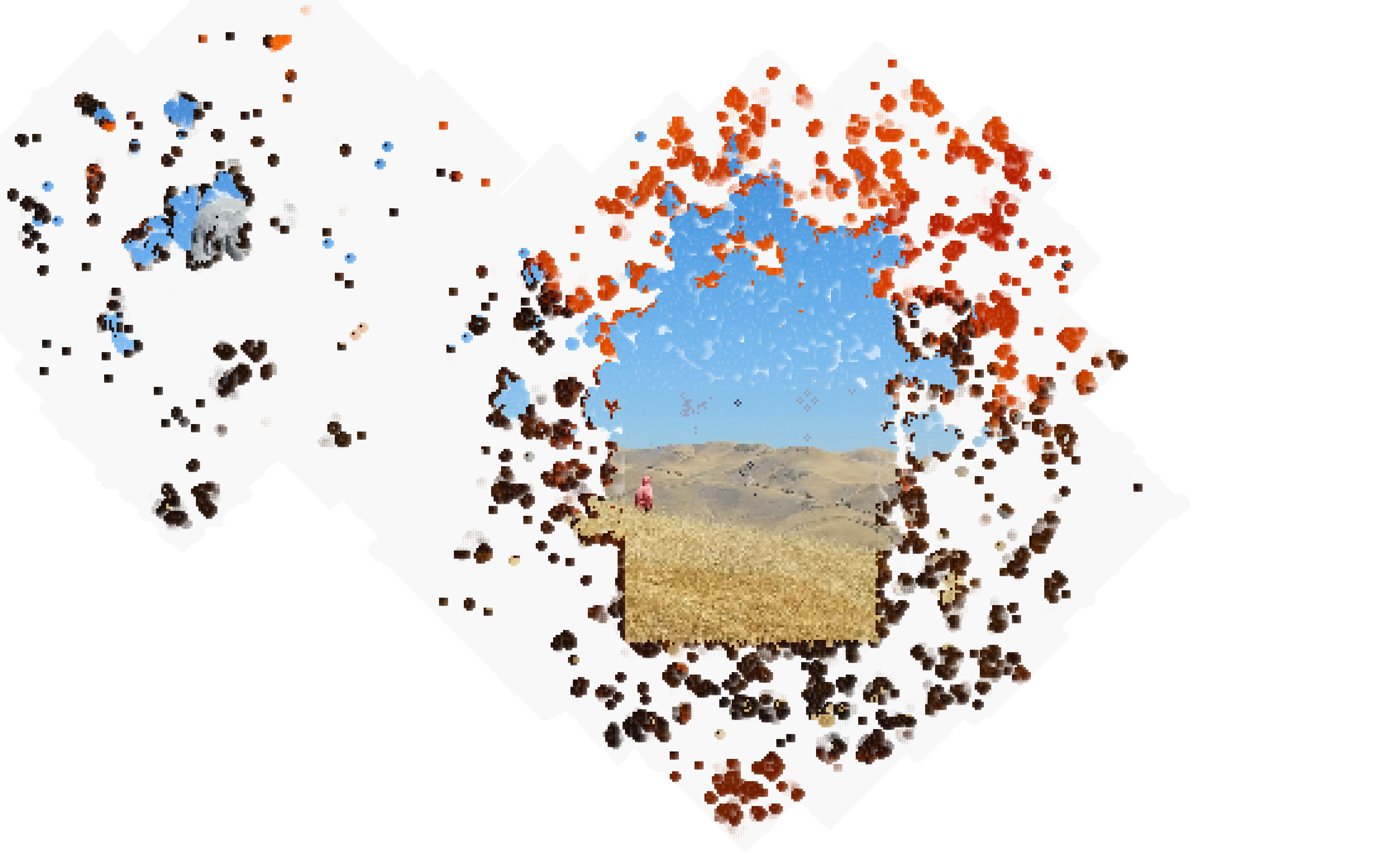 “Acquaintances Through Iteration” is an interactive window that peers into the perspectives of individuals during the 2020 COVID-19 pandemic. The window asks participants to approach the blank surface, which partially reveals an image and expert of an individual’s personal interpretation of the pandemic. The image is unmasked through the use of Cellular Automata, an algorithm simulating the life of cells, which literally refers to the nature in which COVID-19 can spread. Increasingly close distance and action reveals more of the image, which plays with the idea of spreading virus through proximity, but in this case stands as a metaphor for the sharing of ideas. Much like how communication is necessary and unrestrainable, the desire to approach the mirror to connect with others is undeniable, but is constantly in the back of our minds as we engage in the behavior.