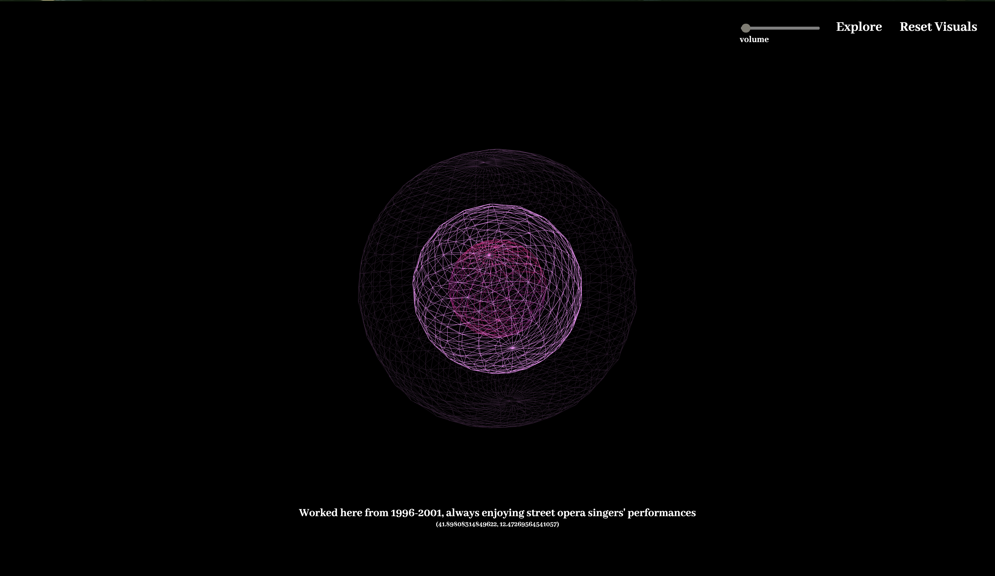 “Ambient Spaces” is a dynamic website created for UCLA’s “Ghestalt” online exhibition. It offers users an interactive map with clickable markers that lead to immersive audio visualizations of the ambiance in each location. These markers were contributed by friends worldwide, who, due to the COVID-19 pandemic, couldn’t physically be together.